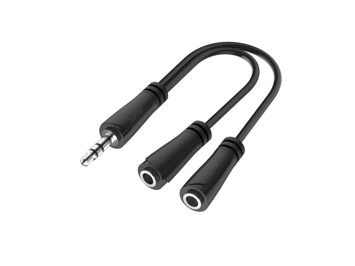 Hama 00200349. Stik 1: 3.5mm, Stik 1 køn: Hanstik, Stik 2: 2 x 3.5mm, Stik 2 køn: Hunstik, Kabellængde: 0,15 m, Produktfarve: Sort