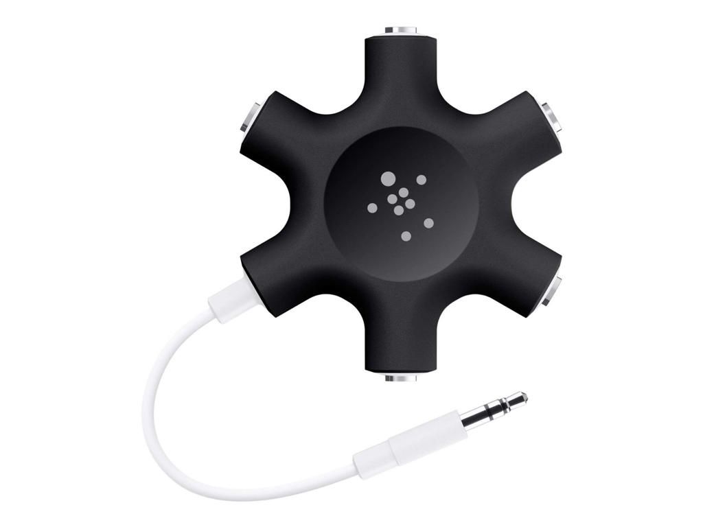 Belkin F8Z274BTBLK. Stik 1: 3.5mm, Stik 1 køn: Hanstik, Stik 2: 5 x 3.5mm, Stik 2 køn: Hunstik, Produktfarve: Sort, Hvid