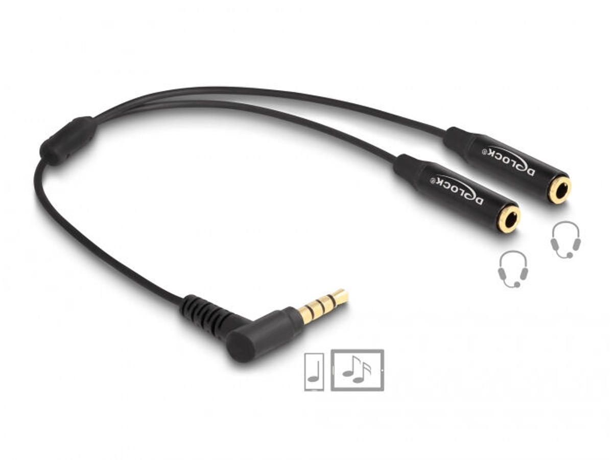 This audio splitter by Delock can be connected to a free stereo jack female port of your MP3 player, mobile phone, tablet, laptop etc. in order to get two stereo jack female interfaces. Thus two persons can easily listen to music or, for example, participate in a video call via two pairs of headphones at the same time. The 4-pin connection on both audio sockets also supports the microphone function, provided the connected headphones have a microphone.