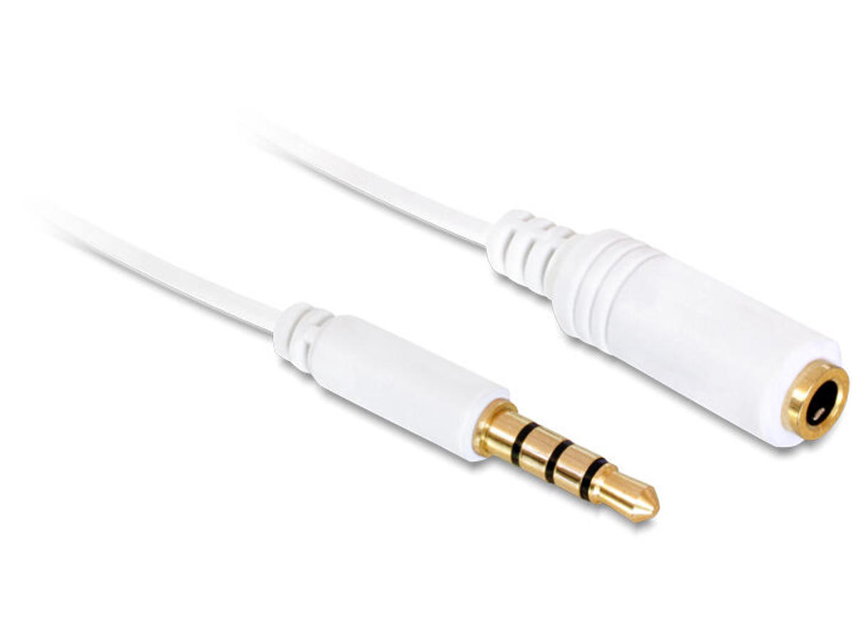 DeLOCK 84717. Stik 1: 3.5mm, Stik 1 køn: Hanstik, Stik 2: 3.5mm, Stik 2 køn: Hunstik, Stikforbindelse kontakter plettering: Guld, Kabellængde: 0,5 m, Produktfarve: Hvid