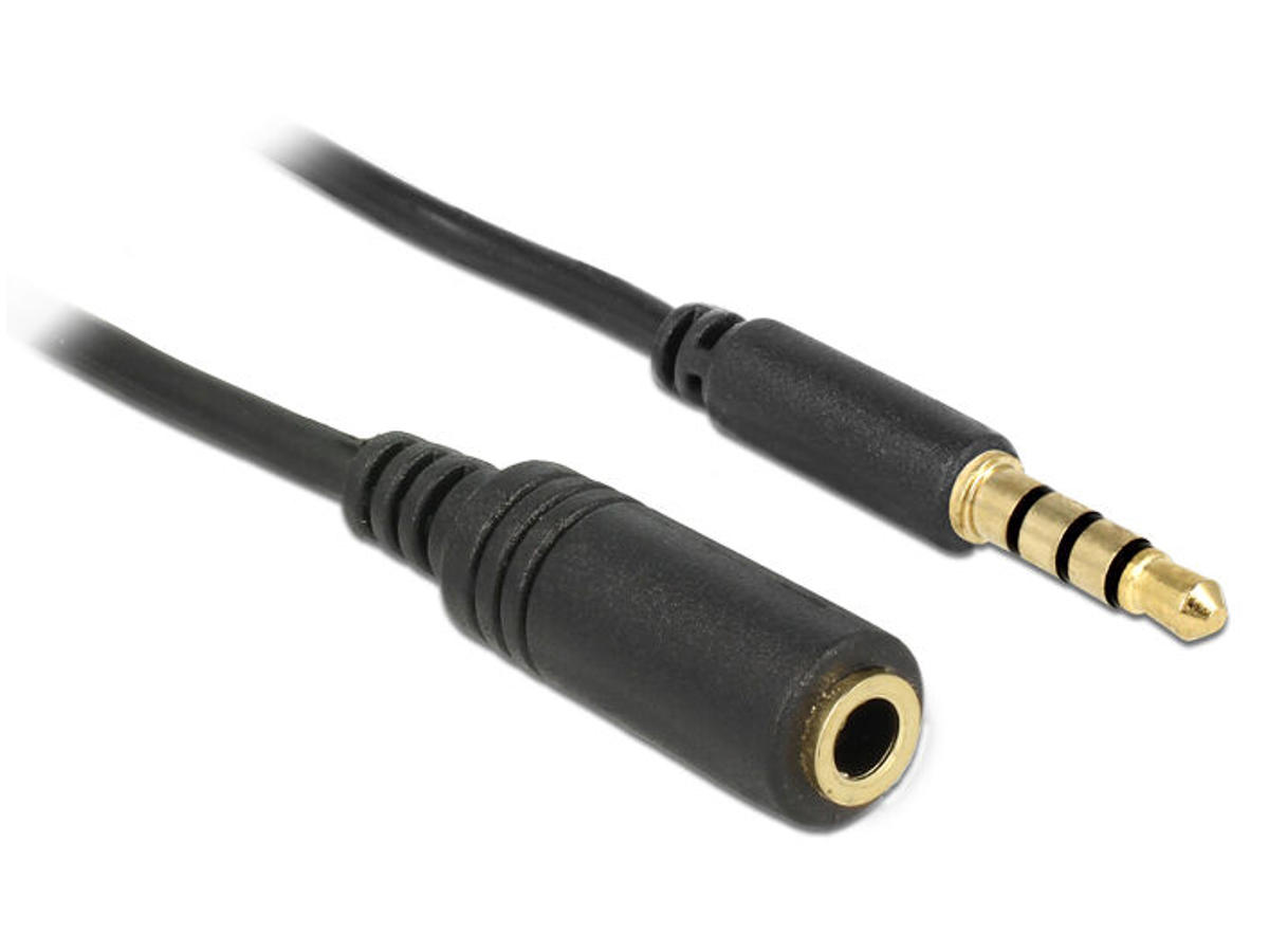DeLOCK 84716. Stik 1: 3.5mm, Stik 1 køn: Hanstik, Stik 2: 3.5mm, Stik 2 køn: Hunstik, Stikforbindelse kontakter plettering: Guld, Kabellængde: 0,5 m, Produktfarve: Sort