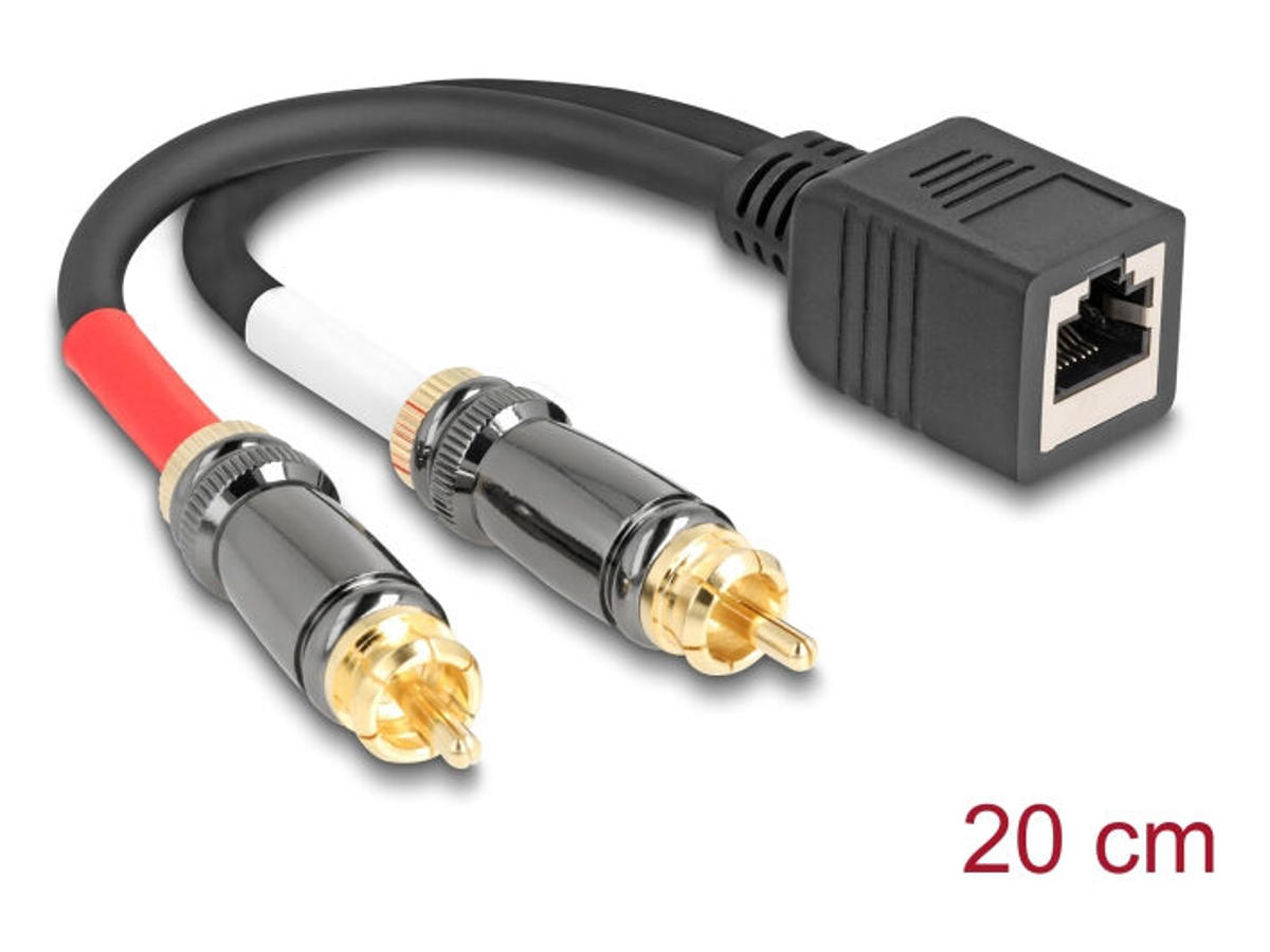 DeLOCK 88172. Stik 1: RJ-45, Stik 1 køn: Hunstik, Stik 2: 2 x RCA, Stik 2 køn: Hanstik, Stikforbindelse kontakter plettering: Guld, Kabellængde: 0,2 m, Produktfarve: Sort