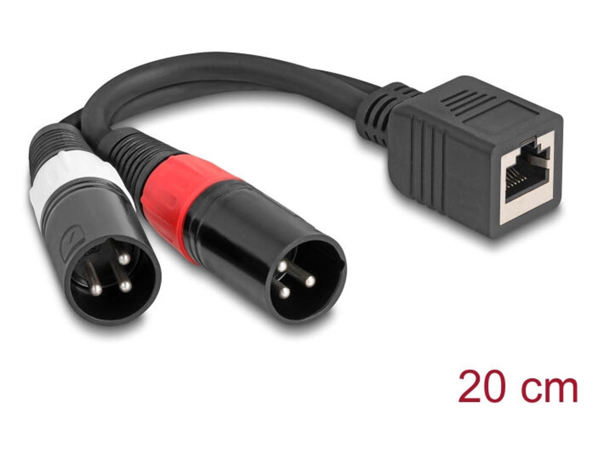 DeLOCK 88179. Stik 1: RJ-45, Stik 1 køn: Hunstik, Stik 2: 2 x XLR (3-pin), Stik 2 køn: Hanstik, AWG-ledningsstørrelse: 24, Kabellængde: 0,2 m, Produktfarve: Sort