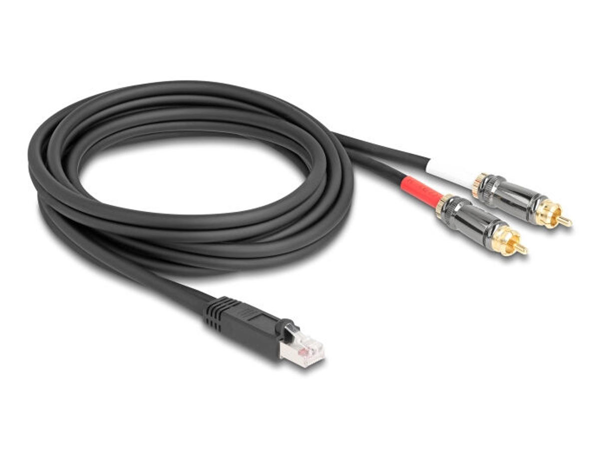 DeLOCK 88171. Stik 1: RJ-45, Stik 1 køn: Hanstik, Stik 2: 2 x RCA, Stik 2 køn: Hanstik, Stikforbindelse kontakter plettering: Guld, Kabellængde: 2 m, Produktfarve: Sort