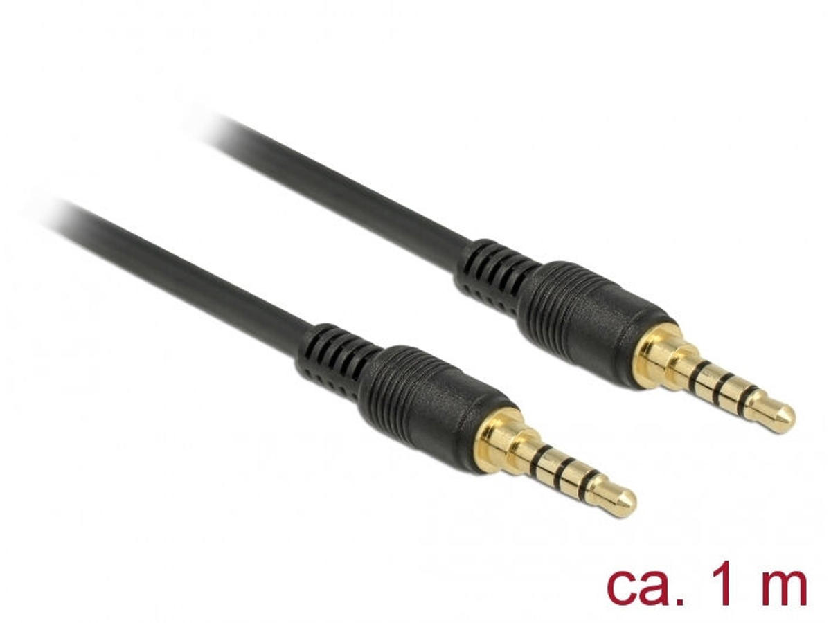 DeLOCK 85595. Stik 1: 3.5mm, Stik 1 køn: Hanstik, Stik 2: 3.5mm, Stik 2 køn: Hanstik, Stikforbindelse kontakter plettering: Guld, AWG-ledningsstørrelse: 24, Kabellængde: 1 m, Produktfarve: Sort