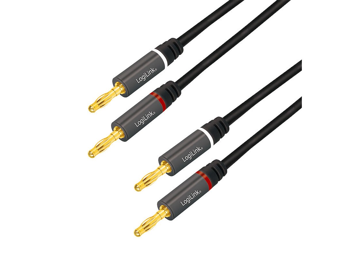 LogiLink CA1211. Stik 1: 2 x bananer, Stik 1 køn: Hanstik, Stik 2: 2 x bananer, Stik 2 køn: Hanstik, Stikforbindelse kontakter plettering: Guld, Kabellængde: 5 m, Produktfarve: Sort