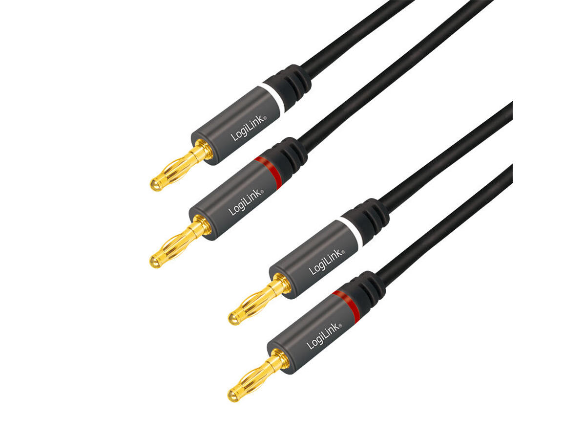 LogiLink's speaker cable with gold-plated contacts provides excellent connectivity and a clear audio. Its soldered banana plugs terminations offer a secure connection with your speaker‘s terminal and are marked with a color code ring for an easy polarity identification. The gold-plated contacts and the pure copper cables ensure maximum transmission quality.