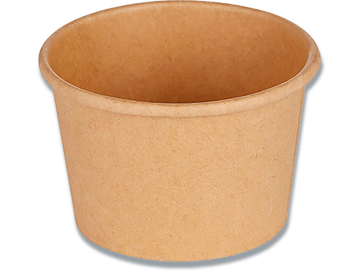 Dressingbæger i brun kraft med PE coating på indersiden for høj barriere mod gennemtrængning. Der findes både plastlåg og paplåg til dette bæger.