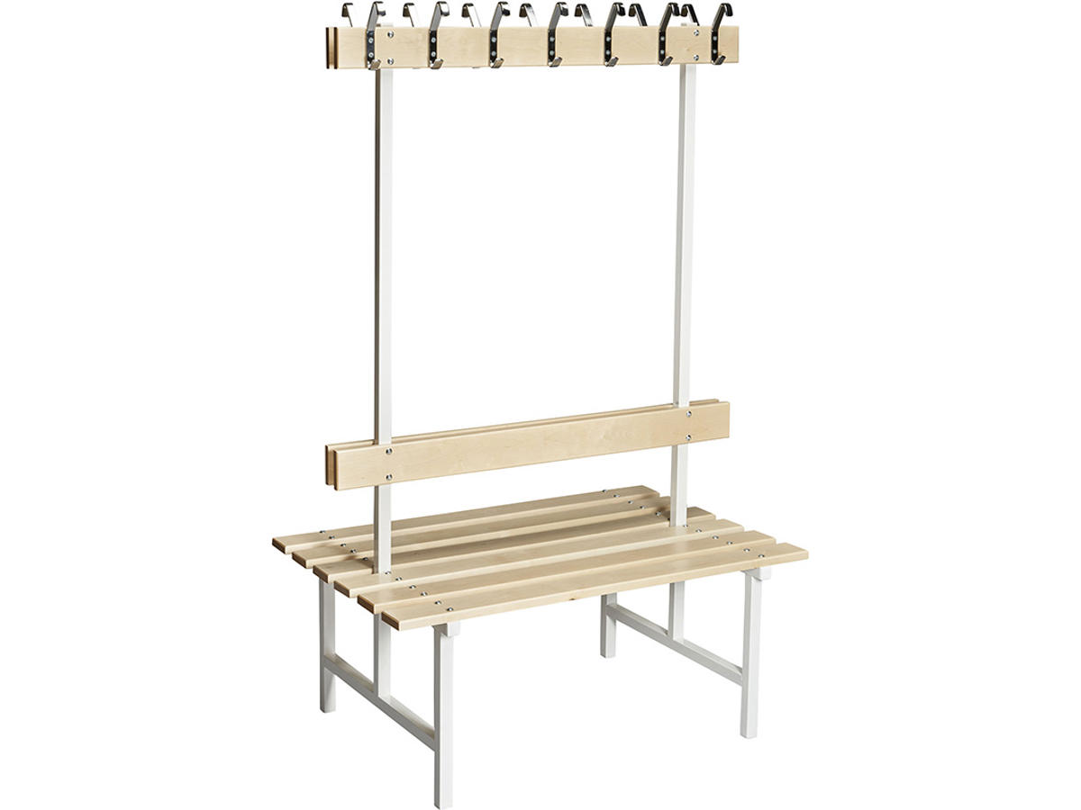 Hvis en almindelig bænk ikke tilfredsstiller dine behov, så er der mulighed for i stedet at vælge en dobbeltsidet variant, der både har kroge og ryglæn. Den dobbeltsidede bænk er velegnet til brug, hvis du ønsker flere funktioner ved din siddeplads. Se vores produktinformation for de forskellige muligheder at vælge imellem.