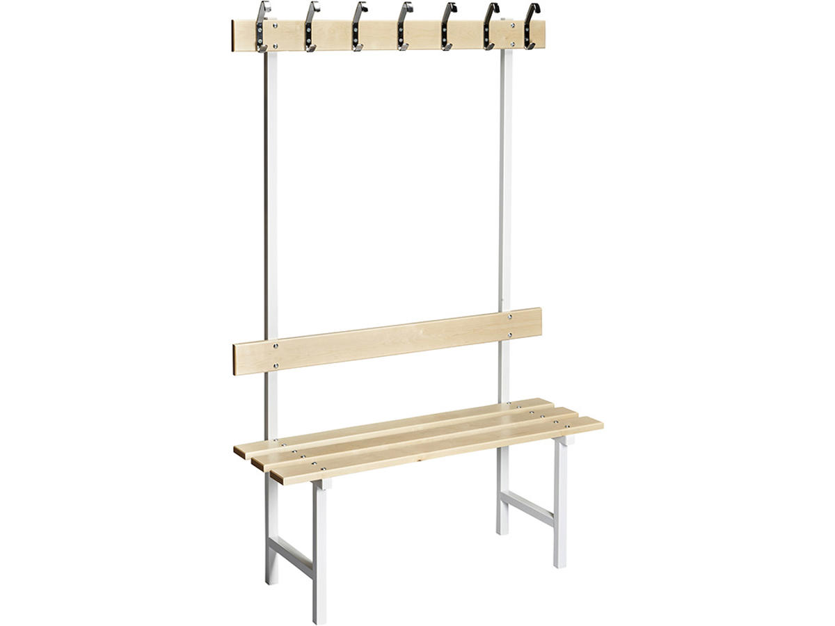 Hvis en almindelig bænk ikke tilfredsstiller dine behov, så er der mulighed for i stedet at vælge en enkeltsidet variant, der både har kroge og ryglæn. Bænken er velegnet, hvis du ønsker flere funktioner ved din siddeplads. Se vores produktinformation for de forskellige muligheder at vælge imellem.