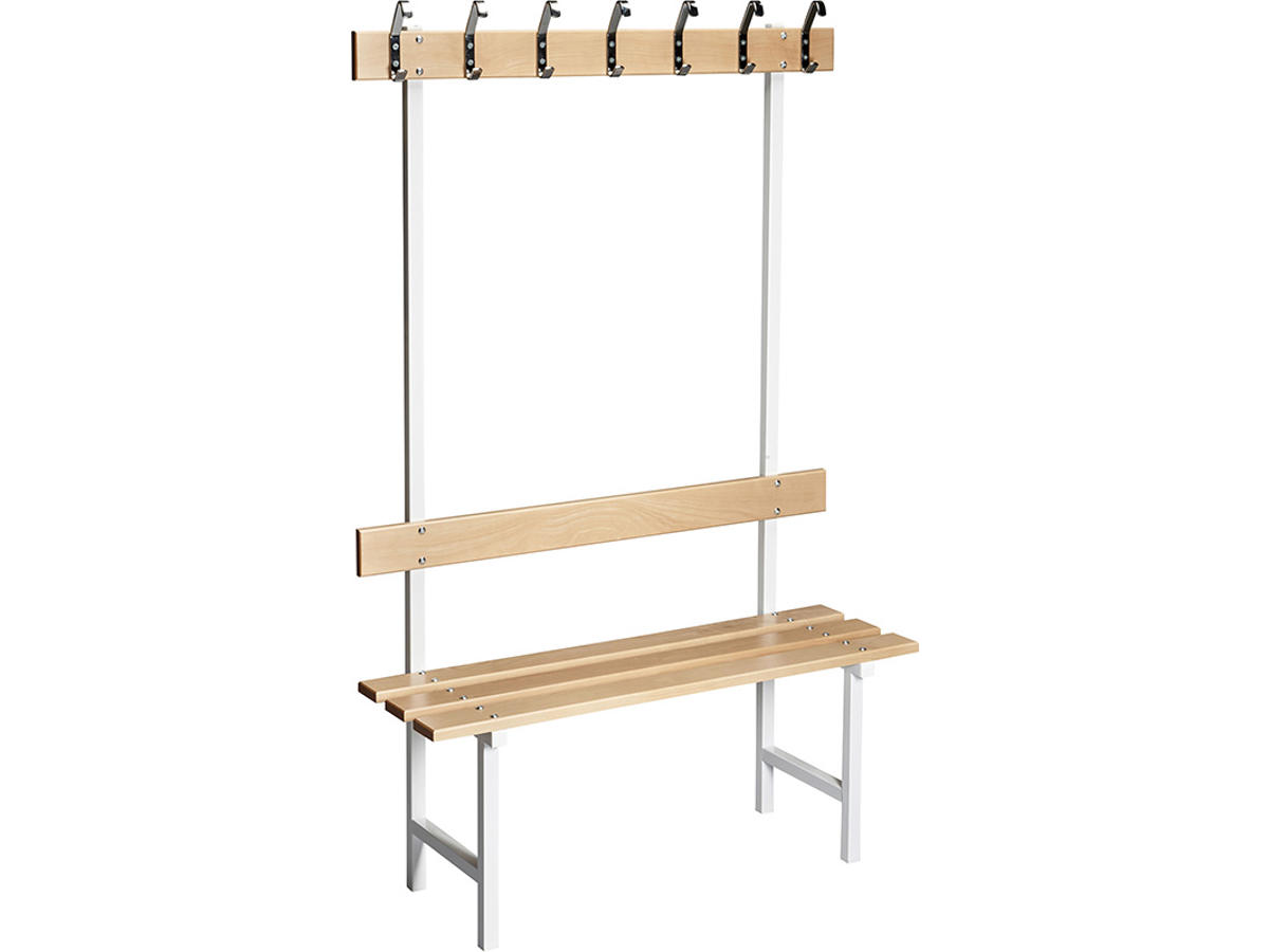Hvis en almindelig bænk ikke tilfredsstiller dine behov, så er der mulighed for i stedet at vælge en enkeltsidet variant, der både har kroge og ryglæn. Bænken er velegnet, hvis du ønsker flere funktioner ved din siddeplads. Se vores produktinformation for de forskellige muligheder at vælge imellem.