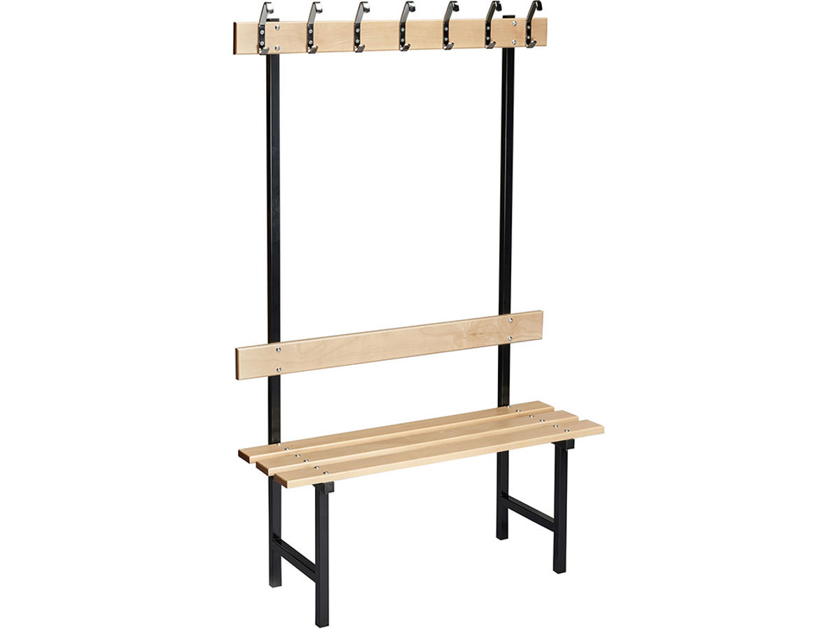 Hvis en almindelig bænk ikke tilfredsstiller dine behov, så er der mulighed for i stedet at vælge en enkeltsidet variant, der både har kroge og ryglæn. Bænken er velegnet, hvis du ønsker flere funktioner ved din siddeplads. Se vores produktinformation for de forskellige muligheder at vælge imellem.