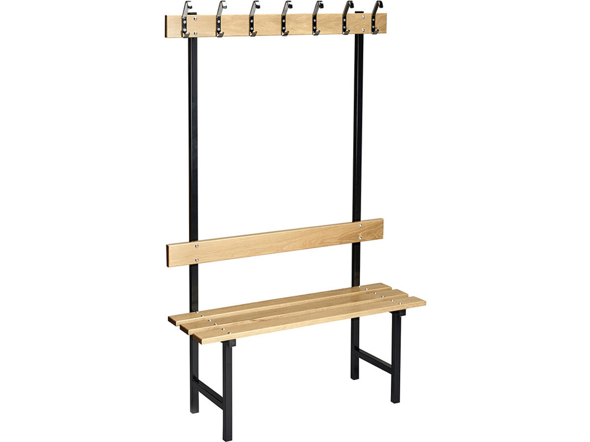 Hvis en almindelig bænk ikke tilfredsstiller dine behov, så er der mulighed for i stedet at vælge en enkeltsidet variant, der både har kroge og ryglæn. Bænken er velegnet, hvis du ønsker flere funktioner ved din siddeplads. Se vores produktinformation for de forskellige muligheder at vælge imellem.
