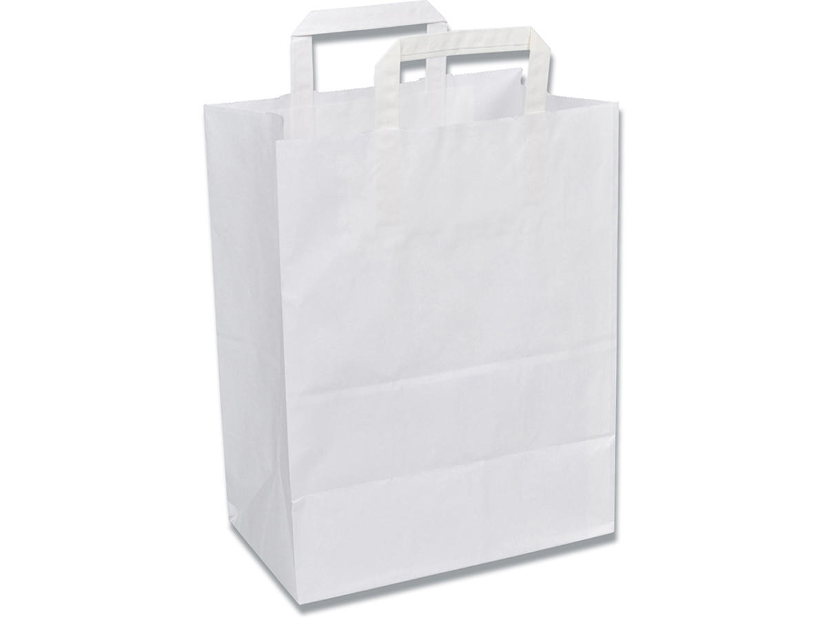 Pose med hank. Hanken er fremstillet af 5 lag papir, hvilket giver stor bærestyrke. Posen er ideel til transport af dagligvarer, tekstiler, gaveartikler, m.m.