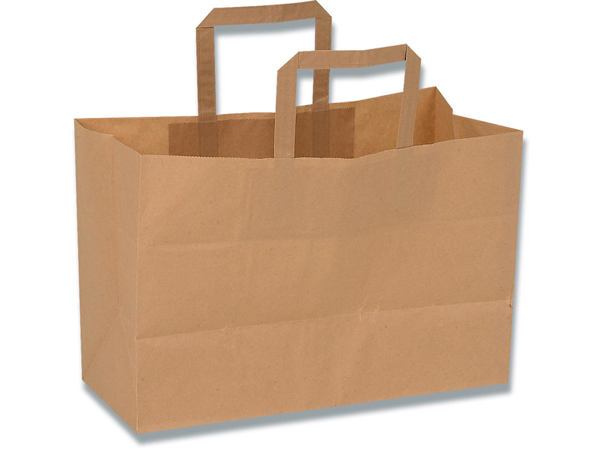 Pose med hank. Hanken er fremstillet af 5 lag papir, hvilket giver stor bærestyrke. Posen er ideel til transport af dagligvarer, tekstiler, gaveartikler, m.m.