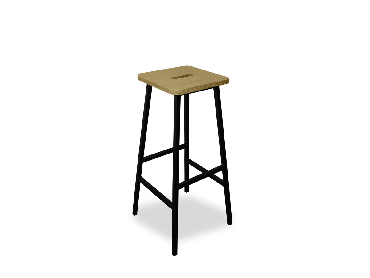 Kvadtrant er en enkel barstol, med et 4-benet, mat sort stel.Sæde er er lavet af krydsfinér med pålagt Egefiner og gribe hul.Stel er monteret med 4 fodstøtter.Dette produkt har 2 års garanti.