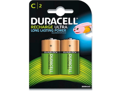 Batteri, C, 1.2 V, 2 stk, Duracell Rechargeable
