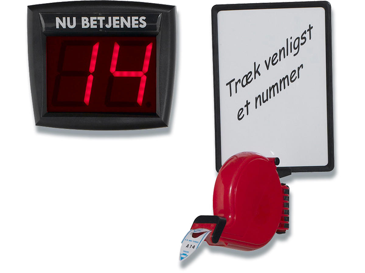Nummer/kø system: startsæt med vægdisplay, fjernbetjening og 10 ruller billetter. Excl. stander. Varenr 1804001