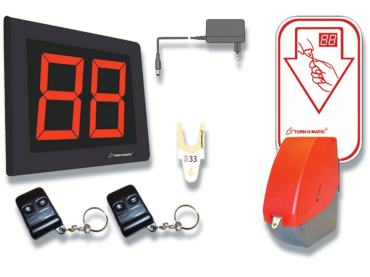 Indeholder:- Plug-in strømforsyning- Nummertavle INR902, 2 røde LED cifre, med trådløs modtager.- Dispenser- Billetter T90 (6 ruller × 4000 billetter)- 2 × Fjernbetjening (+ og -)