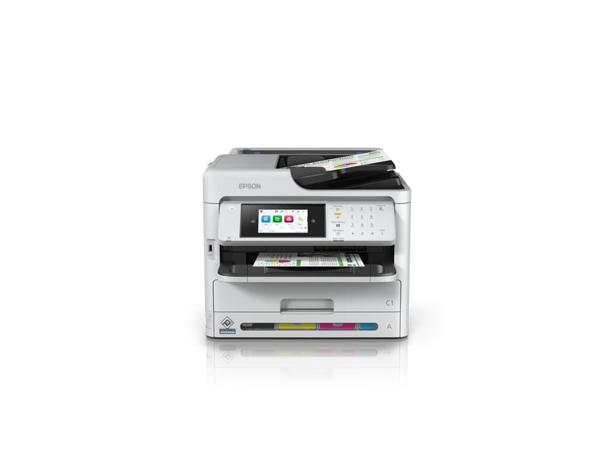 Epson WorkForce Pro WF-C5890DWF. Udskrivningsteknologi: Inkjet, Udskrivning: Farveudskrivning, Maksimal opløsning: 4800 x 1200 dpi, Udskrivningshastighed (farve, normal kvalitet, A4/amerikansk papirformat): 34 sider pr. minut. Kopiering: Farvekopiering, Maksimal kopiopløsning: 600 x 1200 dpi. Scanning: Farvescanning, Optisk scanningsopløsning: 1200 x 2400 dpi. Fax: Farvefax. Duplex-funktioner: Udskriv, Scanne. Maksimal ISO A-serie papirstørrelse: A4. Wi-Fi. Direkte udskrivning. Produktfarve: Sort, Grå