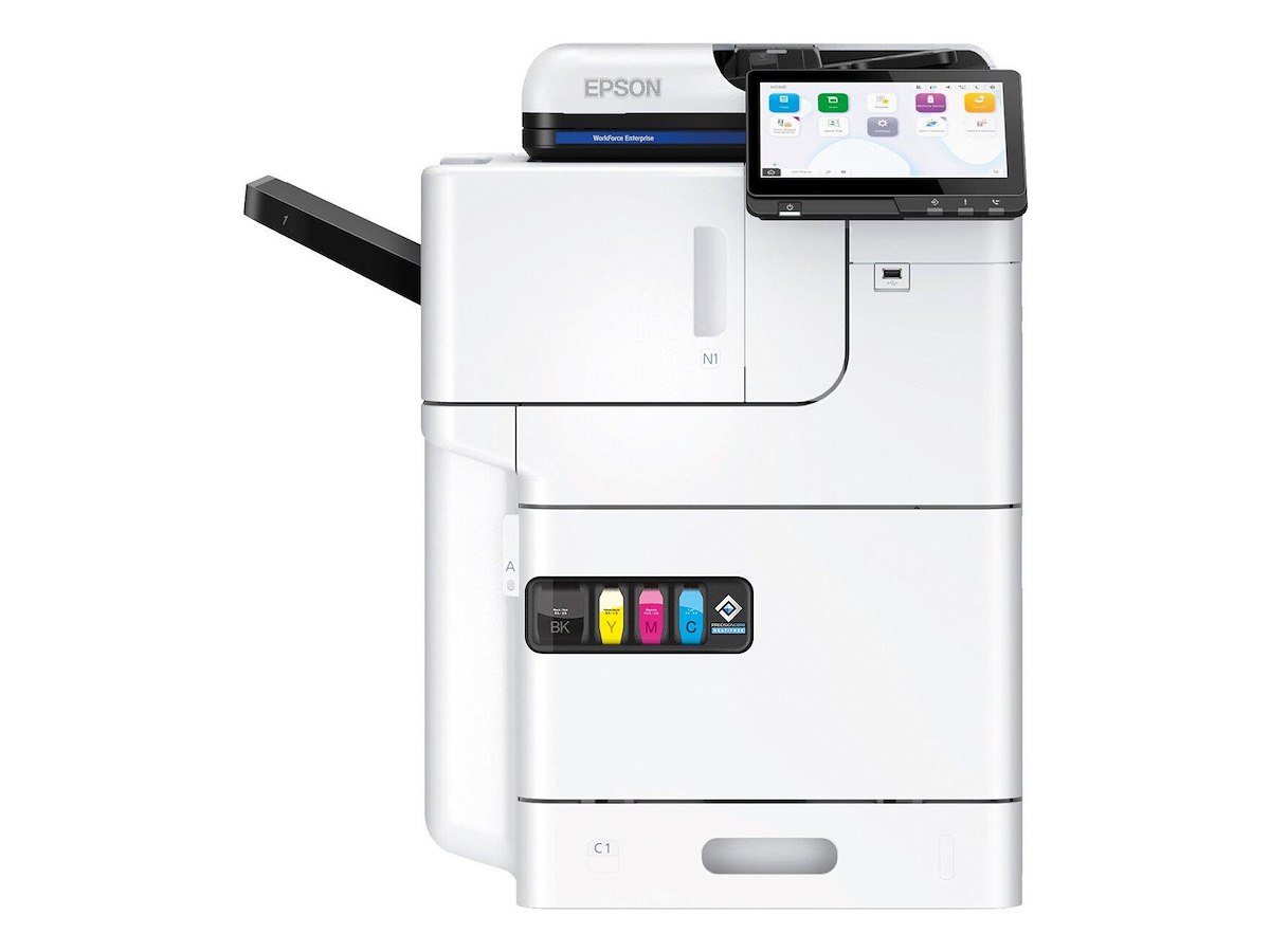 The AM-C550z, with its integrated inner finisher1, boasts a compact design, low power consumption9 and reduced intervention6. Achieve high-speed print and scan speeds (up to 55ppm and 100ipm7) and a fast FPOT1 of 5.5 seconds. The 10.1" touch screen aids the seamless integration of the AM A3 and A4 series and is compatible with a wide range of Epson and third-party solutions.