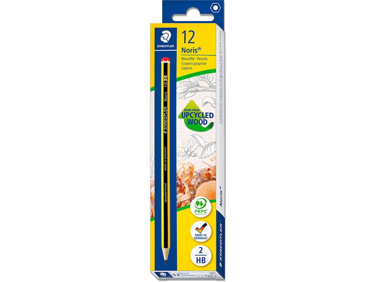 Noris® blyant af høj kvalitet, produceret med Upcycled Wood, som er overskudstræ fra træindustrien. Det PEFC-certificerede genanvendte træ stammer hovedsageligt fra tyske bæredygtigt forvaltede skove. Blød skridsikker overflade og høj brudstyrke.