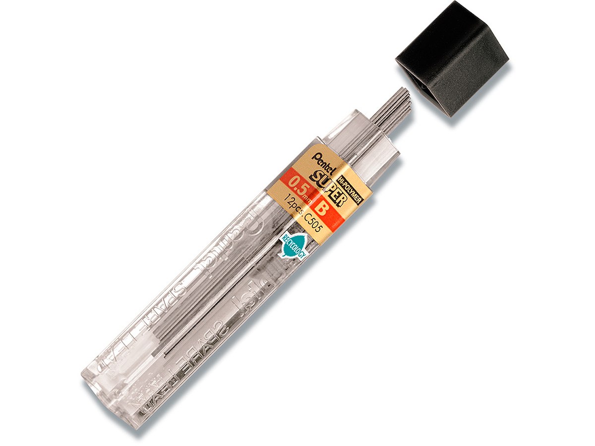 Blyantstifter, 0.5 mm, B, 12 stifter, Pentel Hi-Polymer C505
