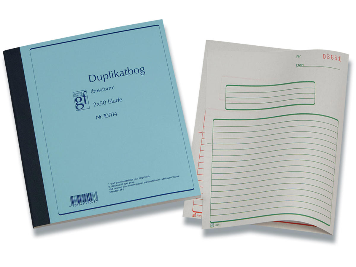 Duplikatbog med fortrykte linjer og kolonner. På den øverste del af kvitteringerne, er der plads til at notere firma navn og andre virksomhedsoplysninger, i den linjerede boks. De fortrykte linjer er perfekt til notering af tekst i forbindelse med levering af varer eller eventuelt for varer som er udleveret i udvalg. De nummererede sider i denne kvitteringsblok hænger sammen 2 og 2, så man nemt kan lave en kopi. Den grønne original skilles let fra den røde kopi, ved hjælp af perforering i højre side.