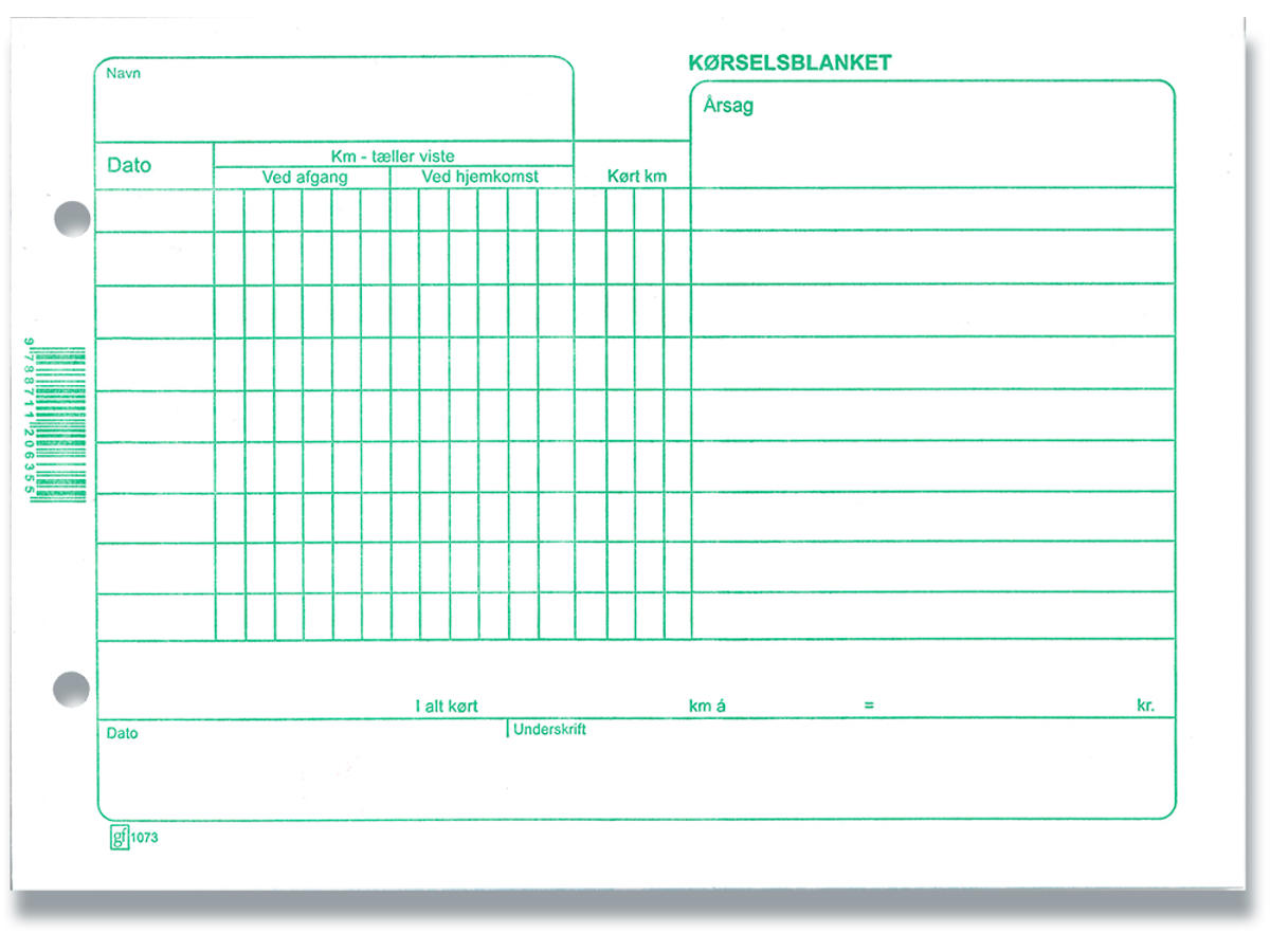 Kørselsregnskab, Tværformat, 210x148 mm, 100 ark, GF