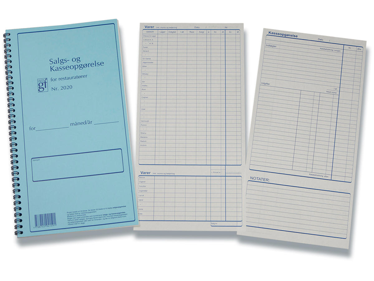 Salgs- og Kasseopgørelse, Til restauratører, Afgiftspligtige varer, 33 blade, GF