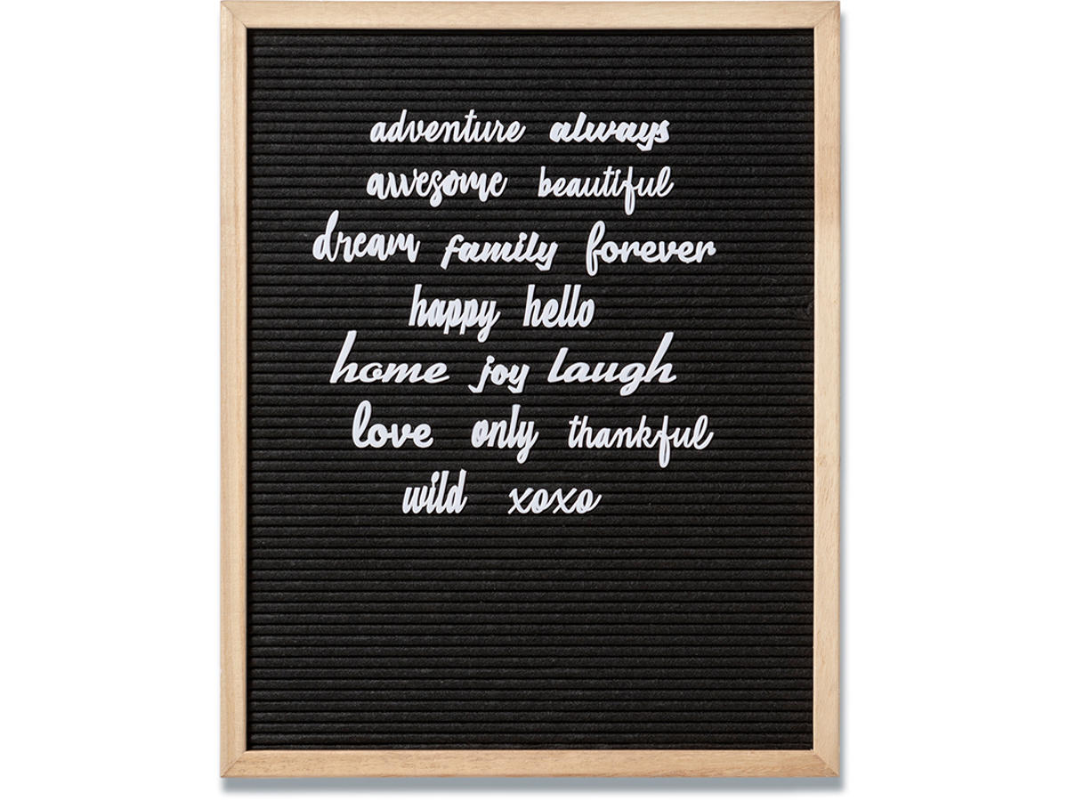 De engelske ord kan bruges til vores bogstavstavler i sort filt. Sættet består af en række populære engelske ord, som passer ind i en personlig indretning. Du kan nemt skifte mellem ordene og kombinere dem med bogstaver og symboler for dit eget personlige design. Sættet indeholder engelske ord til tavler såsom ”forever”, ”family” og ”love”.