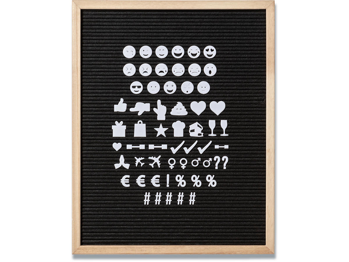De forskellige symboler kan bruges til vores bogstavstavler i sort filt. Sættet består af sjove og smarte symboler, som mange kender fra hverdagen. Symbolerne giver en ekstra mulighed for, at gøre din bogstavstavle helt speciel og din egen. Symbolerne kan nemt skriftes og er perfekte i sammenhæng med bogstaver.