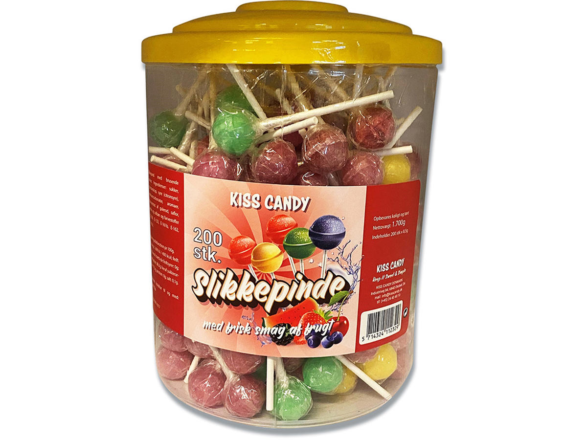 Mix af slikkepinde med smag af: Skovbær, cremet jordbær, kirsebær, ananas og vandmelon med brusepulverfyld.