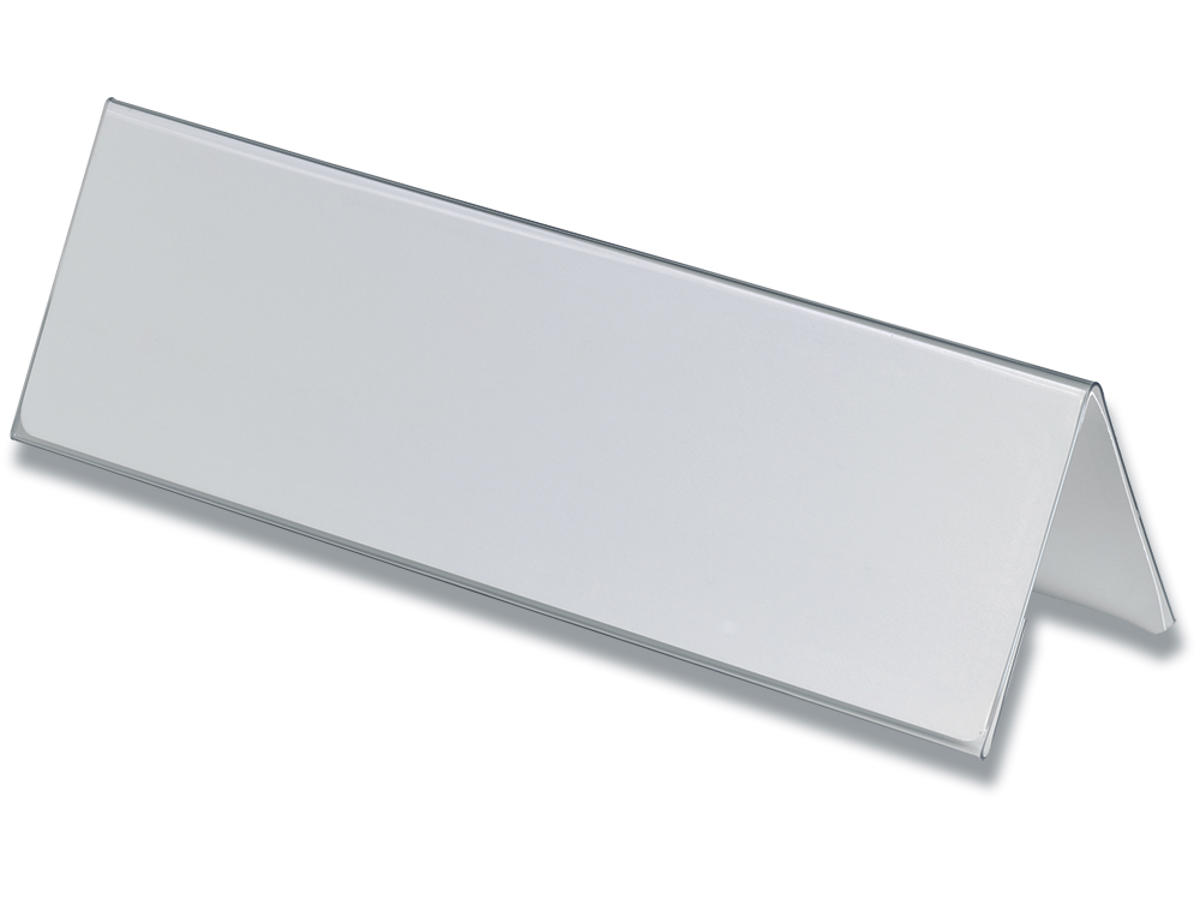 Holder til bordnavnekort til konferencer, mødet, prisskilte m v. Aflæses fra to retninger. Indstik medfølger. Mål indstik: 105/210x297mm (HxB). Design selv en personlig designet bordnavneskilte med gratis skabelon - Klik her