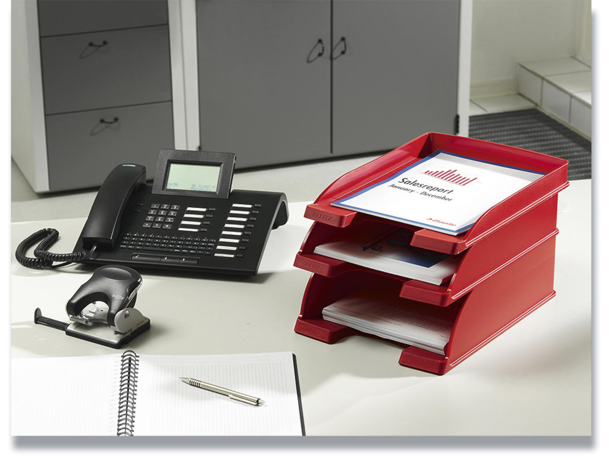 Robust kvalitetsbrevbakke med mindre kapacitet. En del af Leitz Plus modulserien hvor 3 størrelser kan stables lodret eller forskudt. Design og farvekoordineret med Leitz Plus serien.