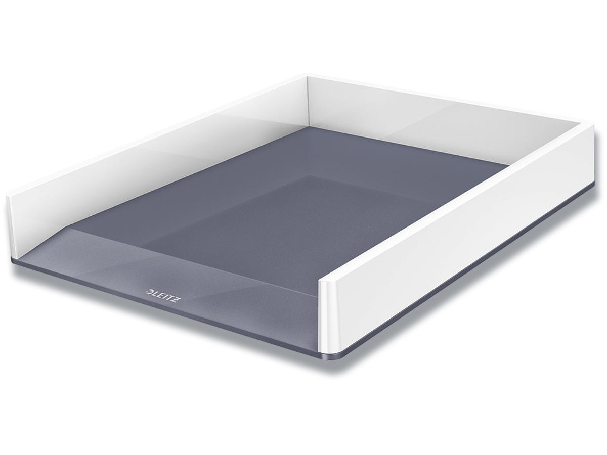 Iøjnefaldende, premium kvalitets Leitz brevbakke i slående, stilfulde dobbelt farver med skinnende finish. Denne robuste brevbakke passer perfekt til andre produkter i Leitz WOW serien.