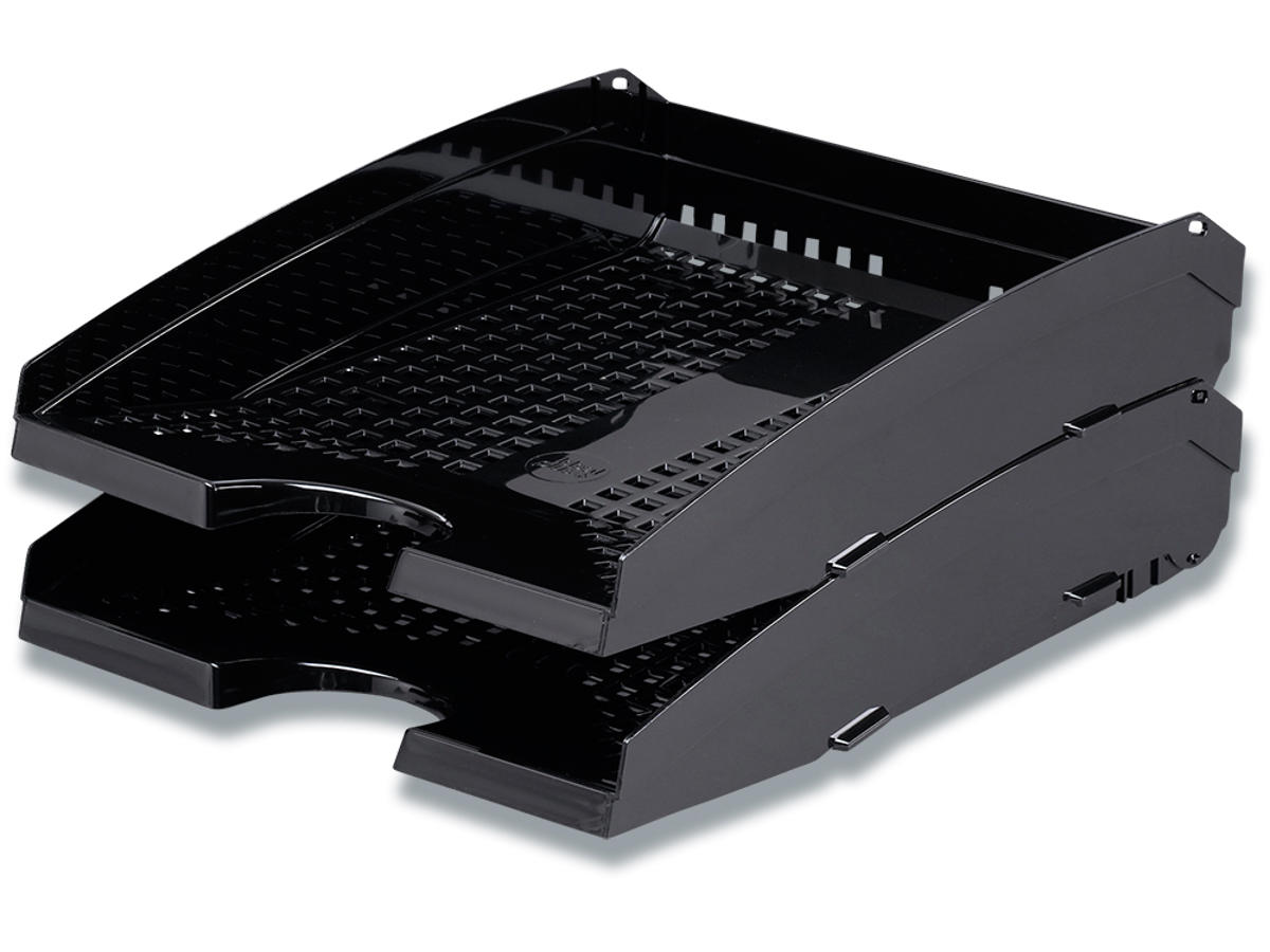 Brevbakke med hængsel funktion, der giver variabel åbningsvinkel når de er stablet, som gør det nemt at tage dokumenter ud og ind. Til format A4 til C4. Mål: 250x337x70mm (BxHxD)