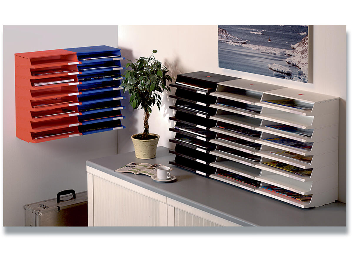Det er let at stable flere TWIN PANORAMA Brevbakker ovenpå hinanden, for at få endnu mere plads til dine papirer. En fleksibel og praktisk måde at holde orden på skrivebordet på. TWIN PANORAMA Brevbakkerne kan hænges på væggen, for at spare plads på skrivebordet.