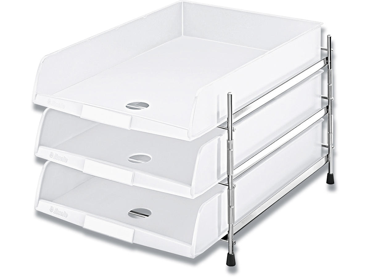 Tidssvarende og flot designet Esselte C4 brevbakkestativ (inkl. 3 brevbakker). Meget stabilt stativ i høj kvalitet.