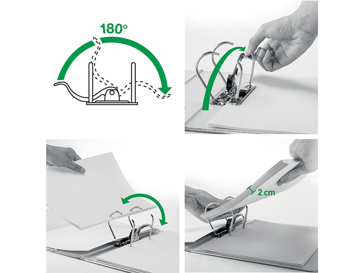• Unik patenteret mekanisme, der åbner 180° og giver en 50% større åbning og 20% hurtigere arkivering