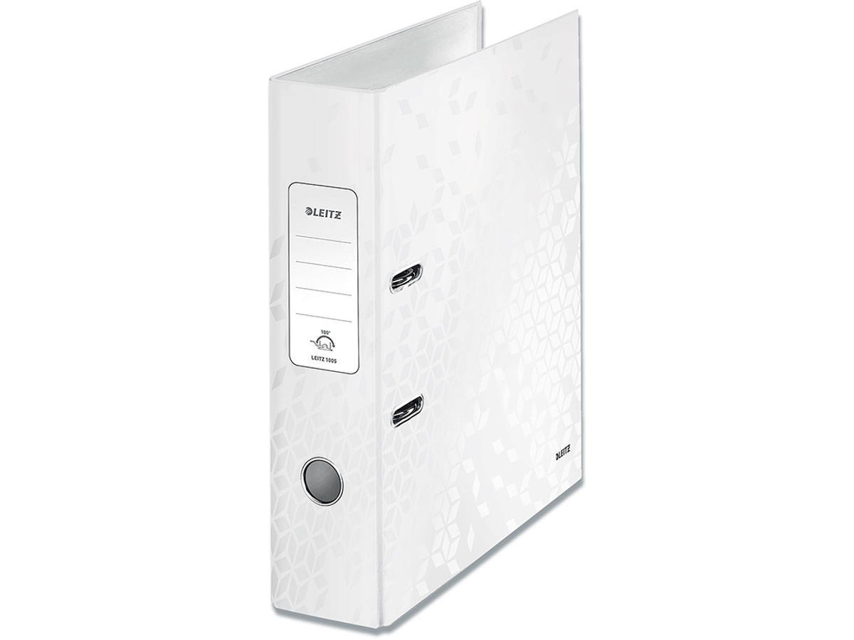 Brevordner, A4, 8 cm, Metallic hvid, Leitz 180° WOW Bred