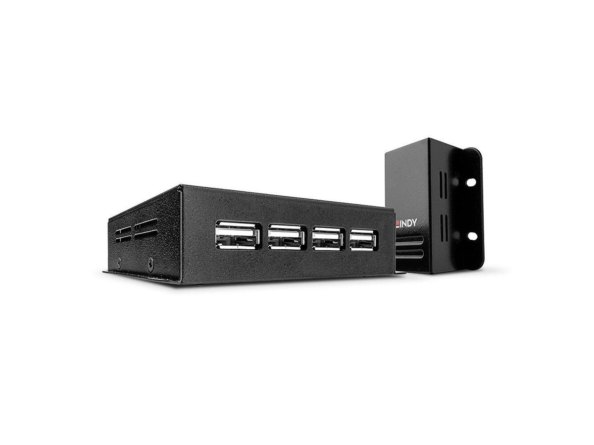 This Lindy USB 2.0 Cat.6 Extender can be used to extend the distance between four USB peripheral devices and the host computer by up to 50m.