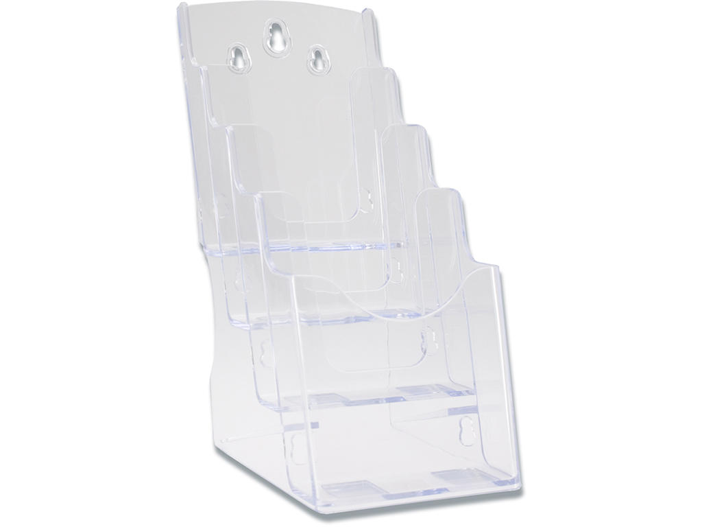 Brochureholder, 1/3 A4, M65, Højformat, 4 fag Til bord/væg, Transparent, BNT