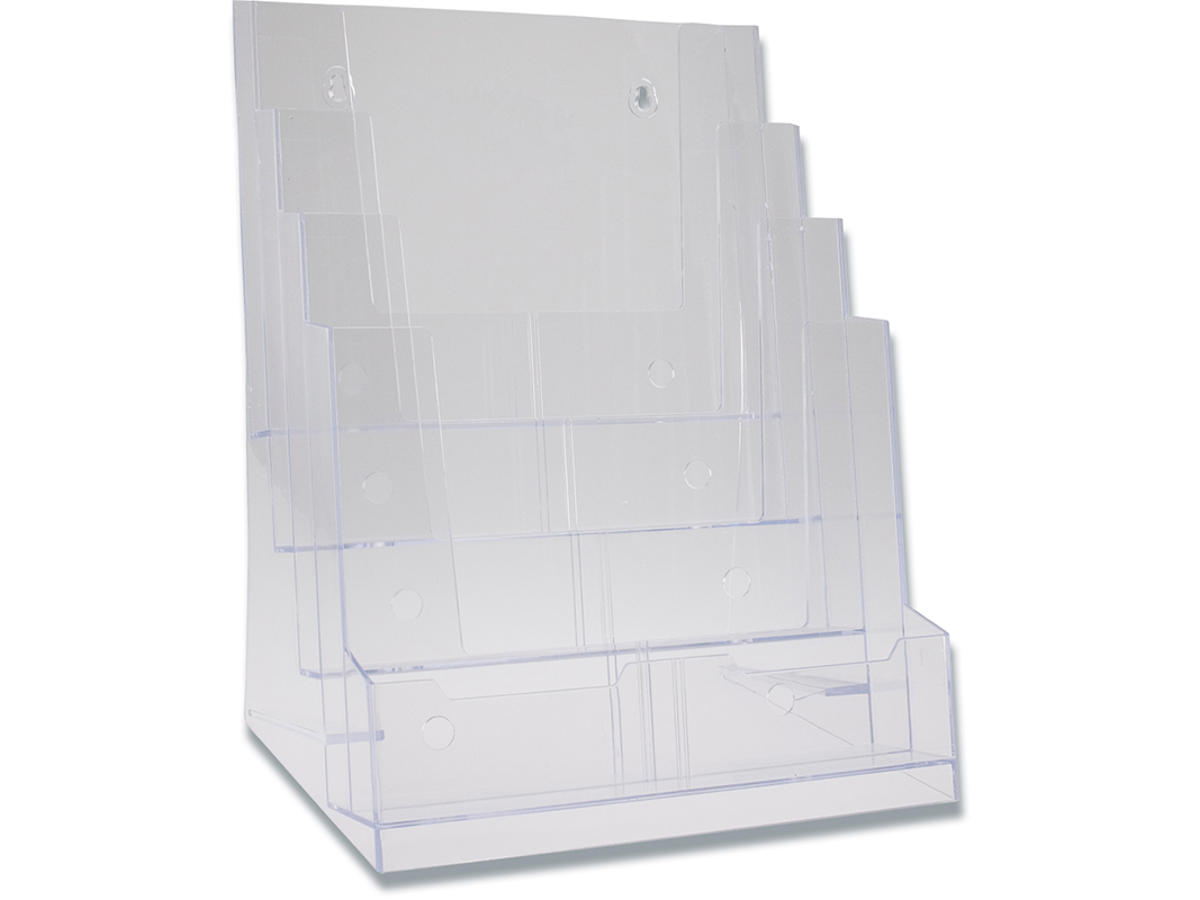 Brochureholder, A4, Højformat, 4 fag Til bord/væg, Transparent, BNT