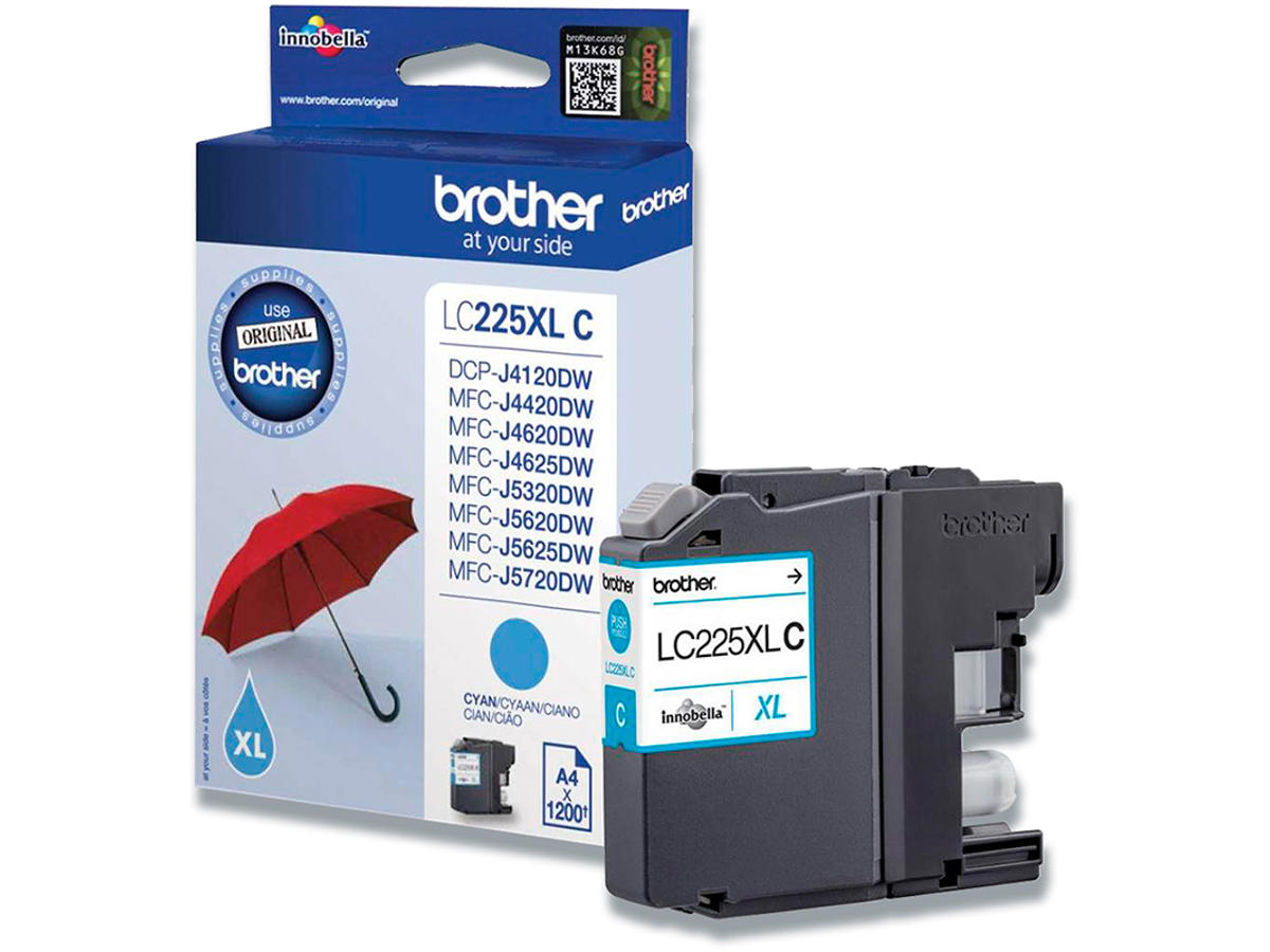 Blækpatron, 1 stk, 1.200 sider, Cyan-blå, Brother LC225XLC