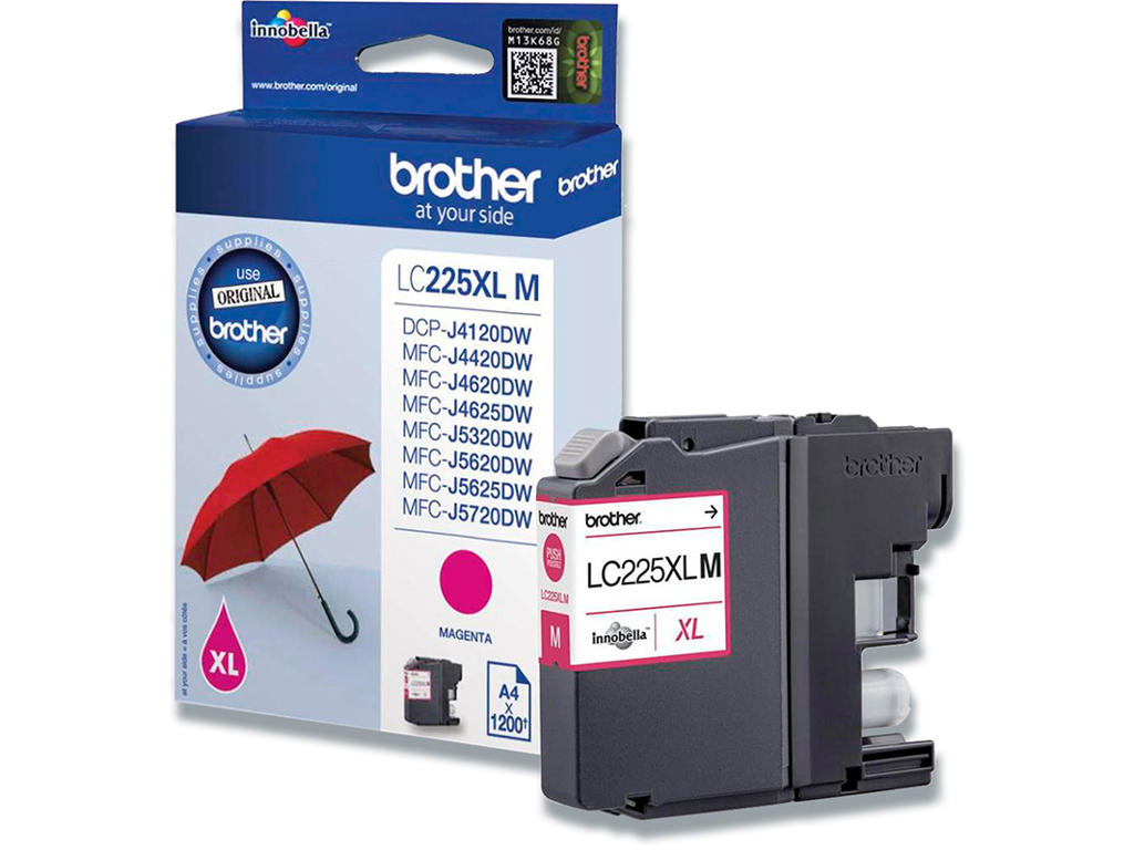 Blækpatron, 1 stk, 1.200 sider, Magenta-rød, Brother LC225XLM
