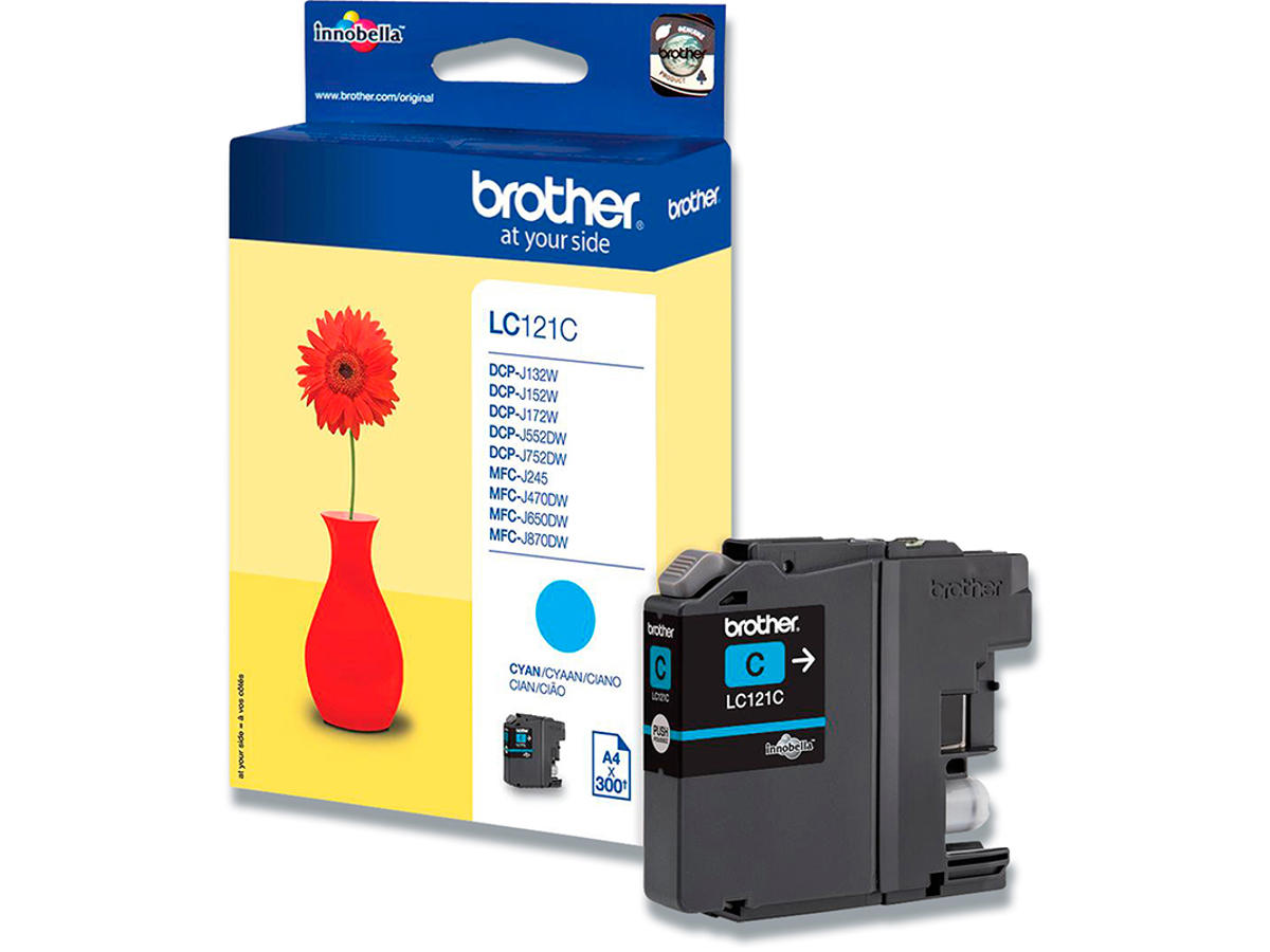 Blækpatron, 1 stk, 300 sider, Cyan-blå, Brother LC121C