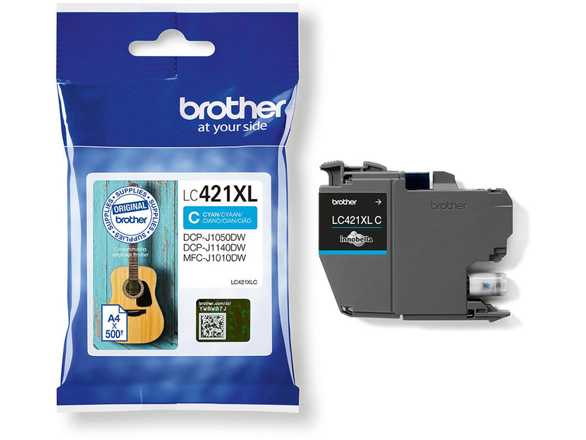 Blækpatron, 1 stk, 500 sider, Cyan-blå, Brother LC421XLC