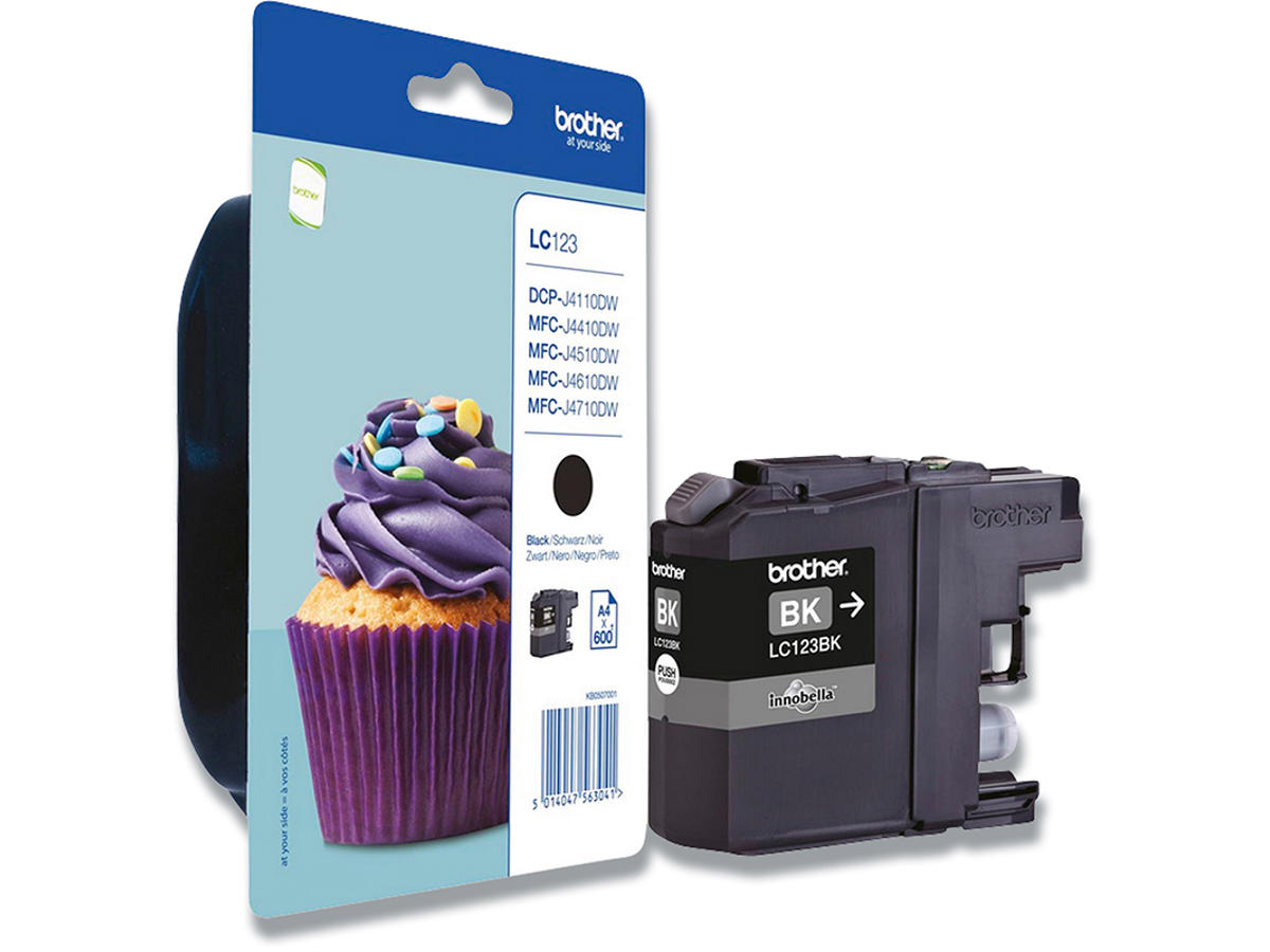 Blækpatron, 1 stk, 600 sider, Black-sort, Brother LC123BK