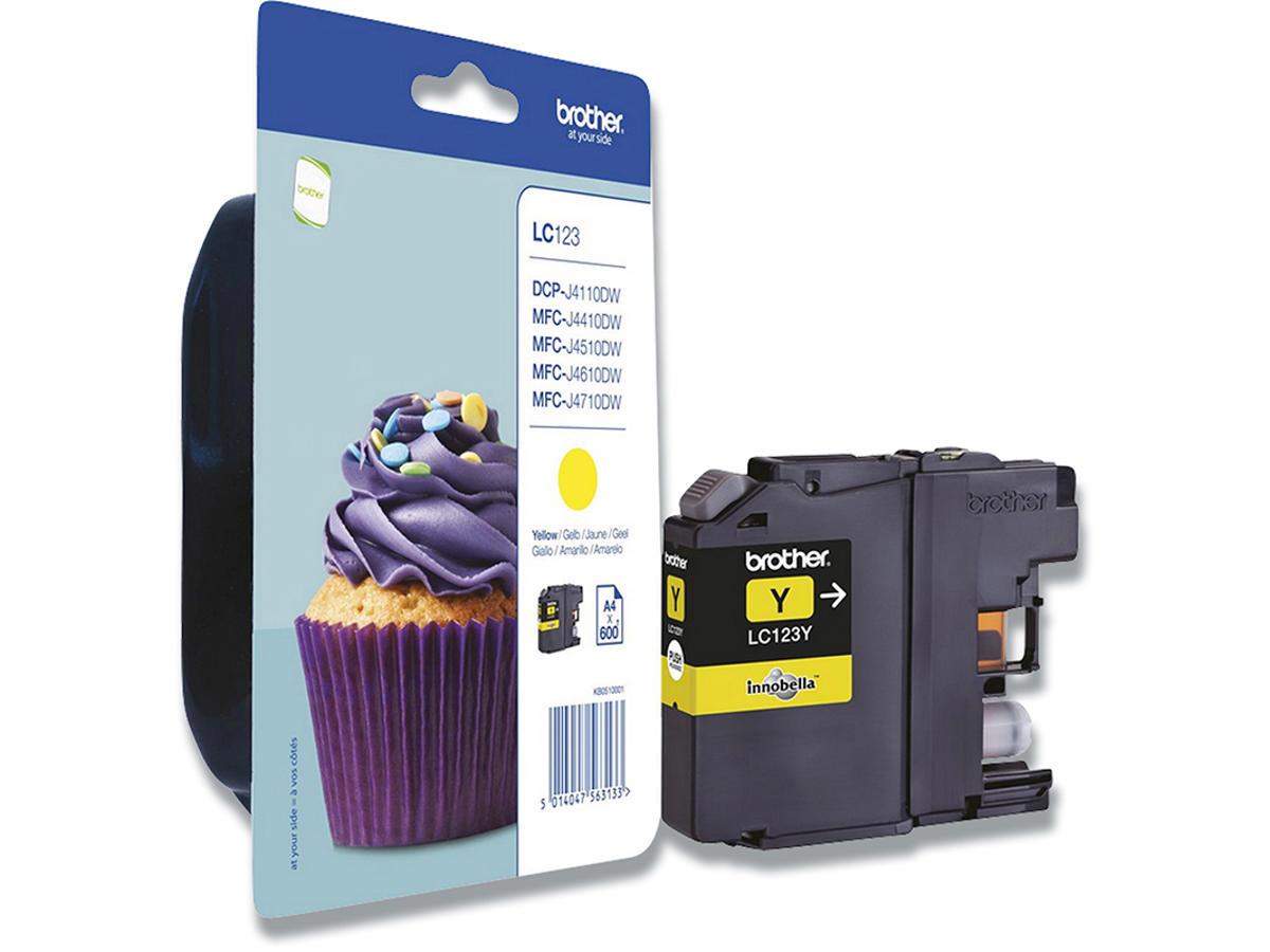 Blækpatron, 1 stk, 600 sider, Yellow-gul, Brother LC123Y